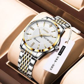 热销简约男士商务手表 奢华时尚不锈钢带石英手表 现...