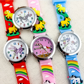 彩虹糖果色可爱卡通儿童腕表 动物小马玫红石英手表...