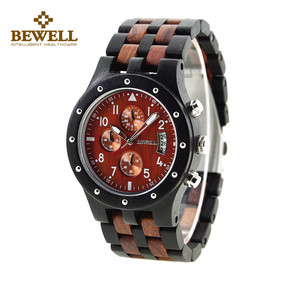 BEWELL大表盘六针时尚男士木手表夜光表针跨境电...