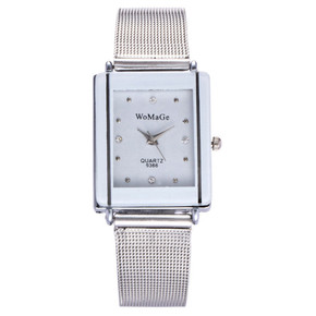 供应womage 时尚网带情侣石英表 方形网带镶钻...