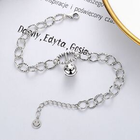 s925纯银笑脸银手链女款韩版网红直播时尚爱心铃铛...