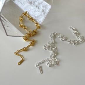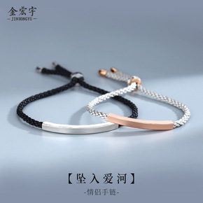 韩国定制925纯银一字弧形盒子链手链ins风文艺百...