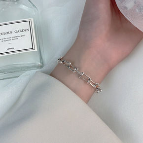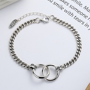 韩版925纯银手链女时尚简约个性复古ins小众设计...