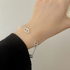 韩版简约个性复古罗马白钻双环相扣手链女冷淡风情侣网...