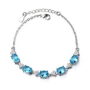 新款湛蓝仿真海蓝托帕石彩宝手链女 镀白金色手饰品直...