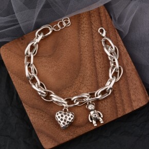 韩版简约粗链条重工定制爱心草莓小熊手链女泰银复古泰...