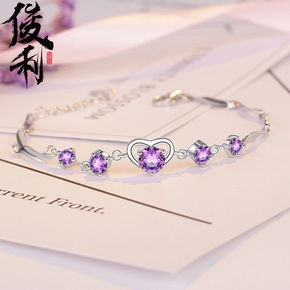 俊利首饰s925纯银心形手链女韩国时尚简约镶锆石爱...