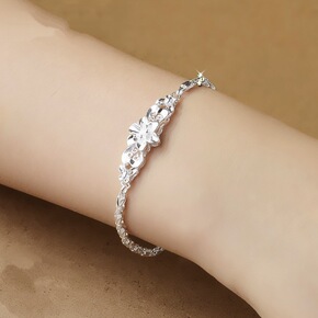 蝶恋花镀S999银手链女时尚日韩版简约民族风紫荆花...