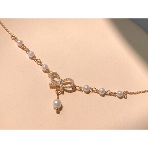 微镶蝴蝶结珍珠手链女真金电镀韩版手链甜美百搭闺蜜抖...