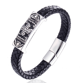 跨境电商编织手工皮革磁扣不锈钢十字架手链男钛钢饰品...