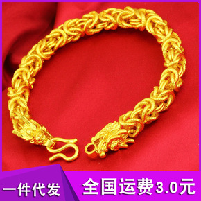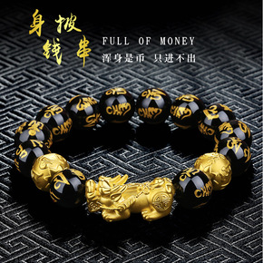越南沙金貔貅手链仿黄金黑玛瑙招财皮丘佛教首饰情侣款...