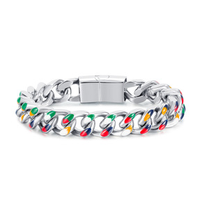 OPK饰品欧美时尚男士滴胶个性古巴链嘻哈朋克钛钢手...
