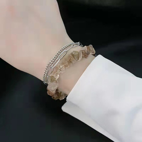 双层天然水晶手链女小众设计高级感ins钛钢双层情侣...