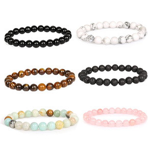 跨境专供天然石手链欧美男士 8毫米珠子弹性手镯手链...
