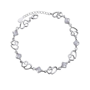 手链镀银紫水晶韩国小饰品批发刻字多层手链女款心形双...