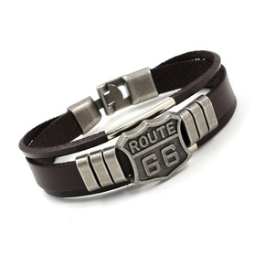 跨境货源个性66皮手链男款朋克复古牛皮手镯时尚饰品...