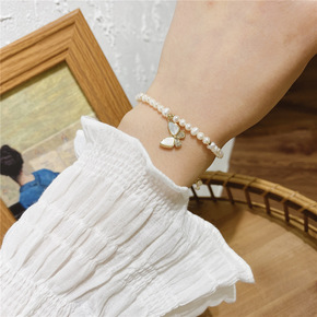 日韩小清新铜镀真金简约蝴蝶手链 复古法式淡水珍珠气...