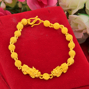 2022厚金圆珠双貔貅手链 沙金保色貔恘直播代发链...