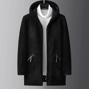 冬季新款大将才子男装纯色连帽羊毛呢大衣中青年男式时...
