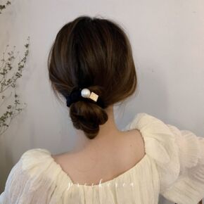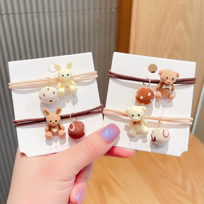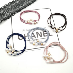东大门热销新款时尚小熊头绳高弹力带珍珠发圈女生基础...