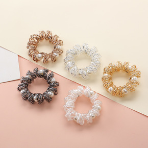 透明电话圈发绳珍珠铆钉头绳皮筋电话线扎发圈女丸子头...