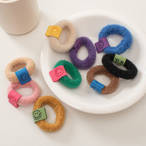 秋冬糖果色毛绒笑脸发圈高弹力基础毛巾圈发绳日韩少女...