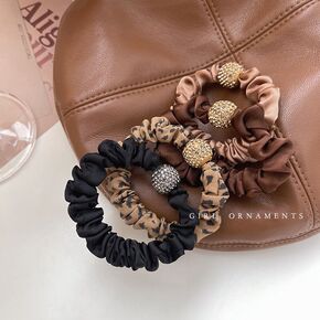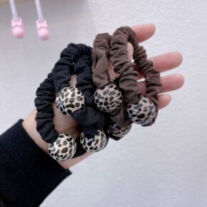 韩国东大门新款豹纹圆球面膜发圈柔软质感简约时尚发绳...