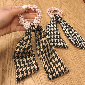韩国网红千鸟格子飘带头绳女扎马尾大肠发圈ins简约...