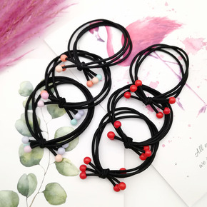 红色韩版高弹力加粗圆珠 发绳头绳简约耐用红色...