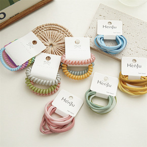 韩版电话线发圈网红扎头发头绳高弹力皮筋塑料手环钥匙...