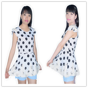 2021甜美女款显瘦风格娃娃装春夏季新款波点雪纺衫...