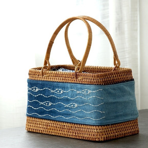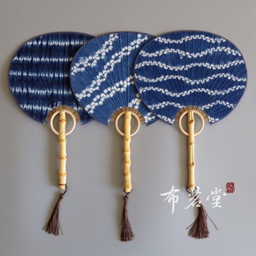 批发 扎染竹根柄团扇 草木染植物蓝染面料手工制作...
