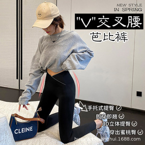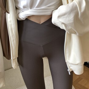 交叉腰鲨鱼裤女外穿春秋收腹显瘦芭比裤高腰收腹灰色打...