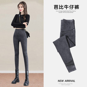 灰色打底裤女春秋外穿薄款高腰牛仔芭比裤收腹提臀紧身...