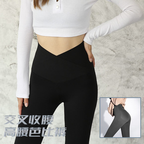 交叉高腰鲨鱼裤女春夏外穿露脐收腹提臀显瘦轻薄打底裤...