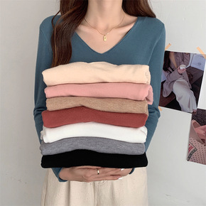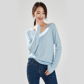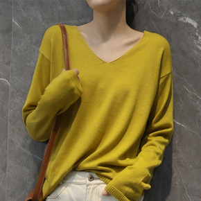 基础多色V领quan羊毛打底衫女2022早春新品宽...