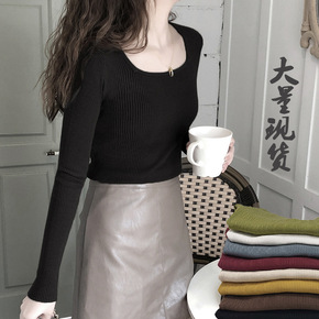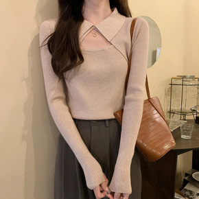 早春装新款针织衫修身POLO领小心机纯欲打底毛衣2...
