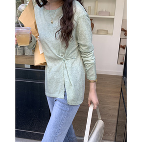 2021新款秋荷叶边下摆收腰套头打底衫裙摆上衣修身...