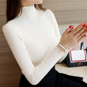 秋冬新款韩版时尚休闲高领套头打底修身毛衣内搭纯色长...