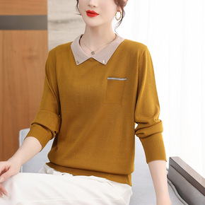 春季娃娃领针织衫女长袖上衣2022年新款妈妈毛衣外...