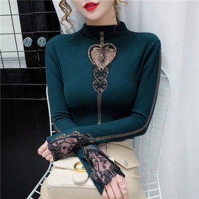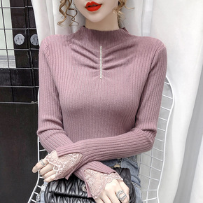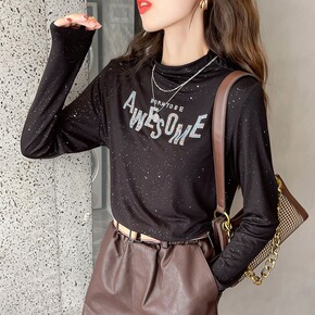 2020秋冬加厚双面德绒半高领烫钻长袖修身打底衫上...
