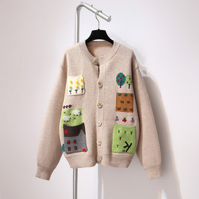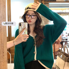 外贸女装2021春秋新款韩版开衫外套女针织衫中长款...
