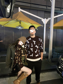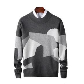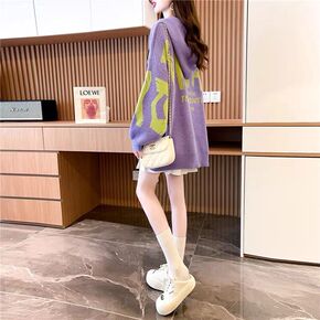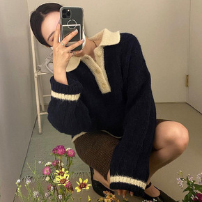 2021秋冬新款撞色翻领字母刺绣套头毛衣慵懒风休闲...