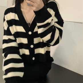 「无尽迁徙」反针设计~街头休闲宽松不规则条纹毛衣女...