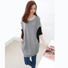 2020春秋冬韩版t恤学生拼色7分长袖休闲宽松打底...