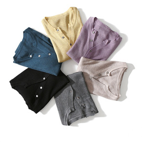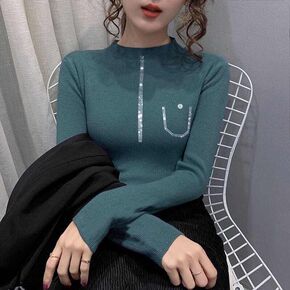 现货秋冬款跨境新款女装亚马逊爆款纽扣纯色高领打底衫...