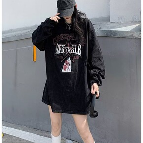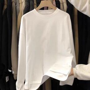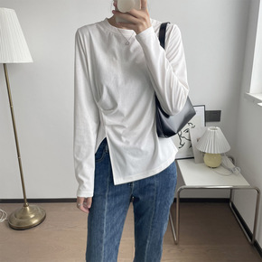 韩国东大门秋冬新款加绒开叉打底衫百搭宽松白色长袖t...
