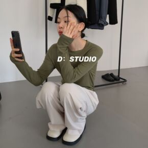 AMOMI秋冬女打底衫半永久杂志T圆领修身上衣显瘦...