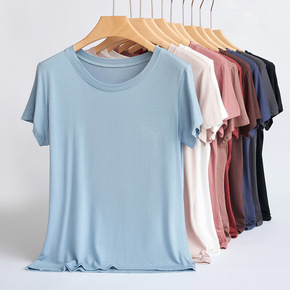 莫代尔短袖t恤女夏季薄款圆领大码打底衫内搭修身纯色...