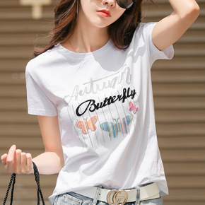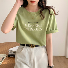 短袖t恤女2021新款夏装女士休闲宽松棉质打底衫上...